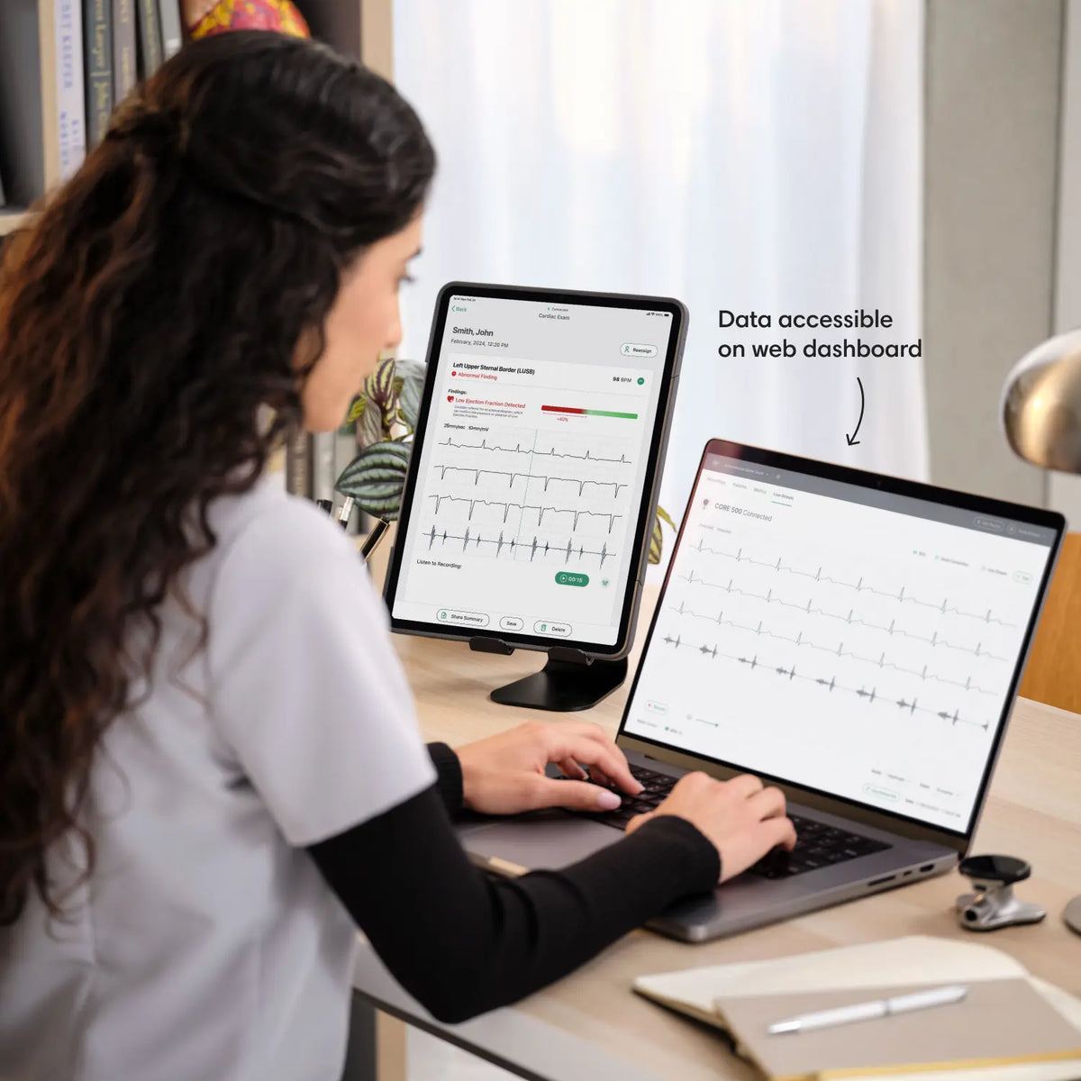 The CORE 500™ is the modern stethoscope replacement, blending 3-lead ECG with AI insights, unparalleled audio clarity, waveform visualizations, and exam recording and sharing capabilities.